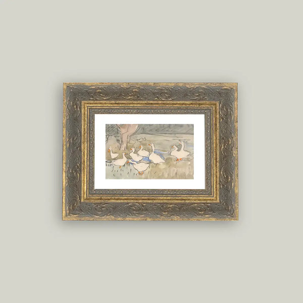 Bring a touch of vintage countryside charm into your home with this framed goose art. Featuring a soft, storybook-style illustration of geese gathered along a peaceful pond, this artwork adds warmth, whimsy, and nostalgic character to any space.
